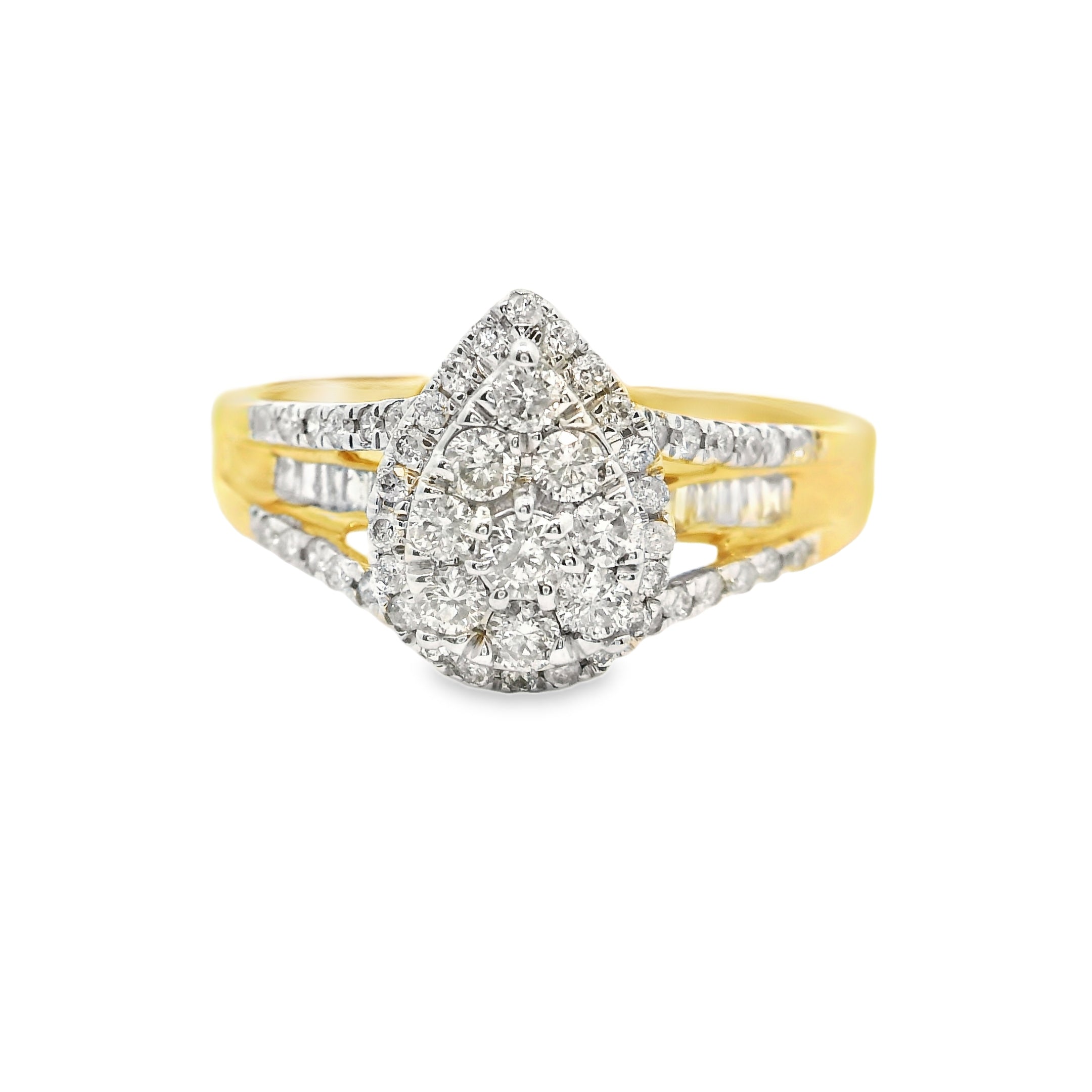 14K Yellow Gold Multistone Trinity Pear Cluster Diamond Ring 0.50 CTTW
