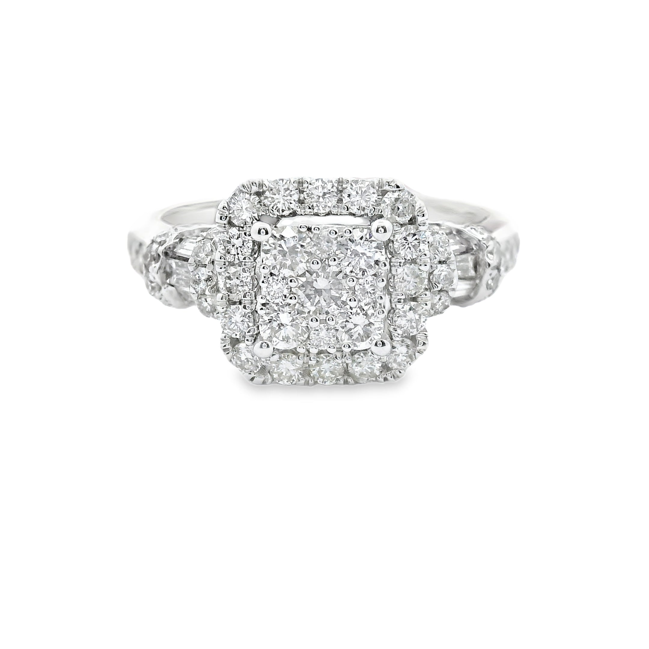 14K White Gold Multi Stone Square Cut Diamonds Ring 1.09 CTTW