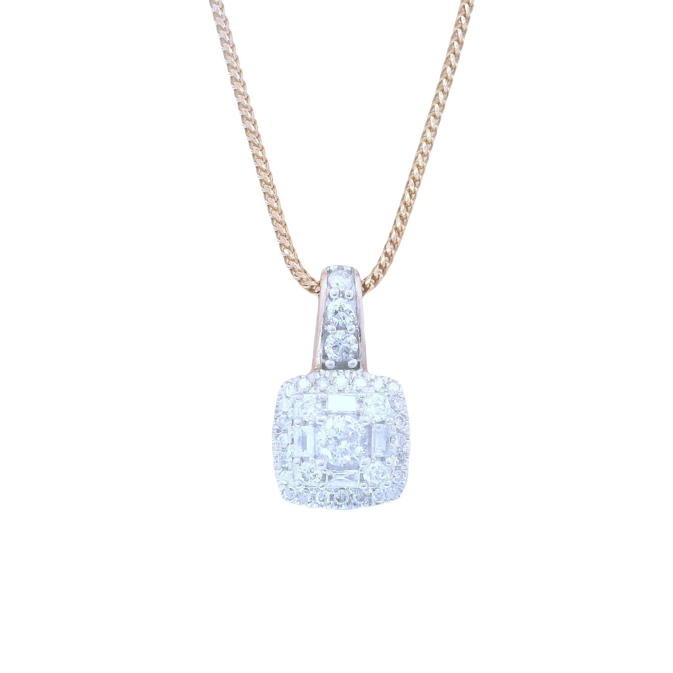 10K Rose Gold Elegant Rounded-Square Diamond Charm 18 Inch Necklace Set 0.20 CTTW