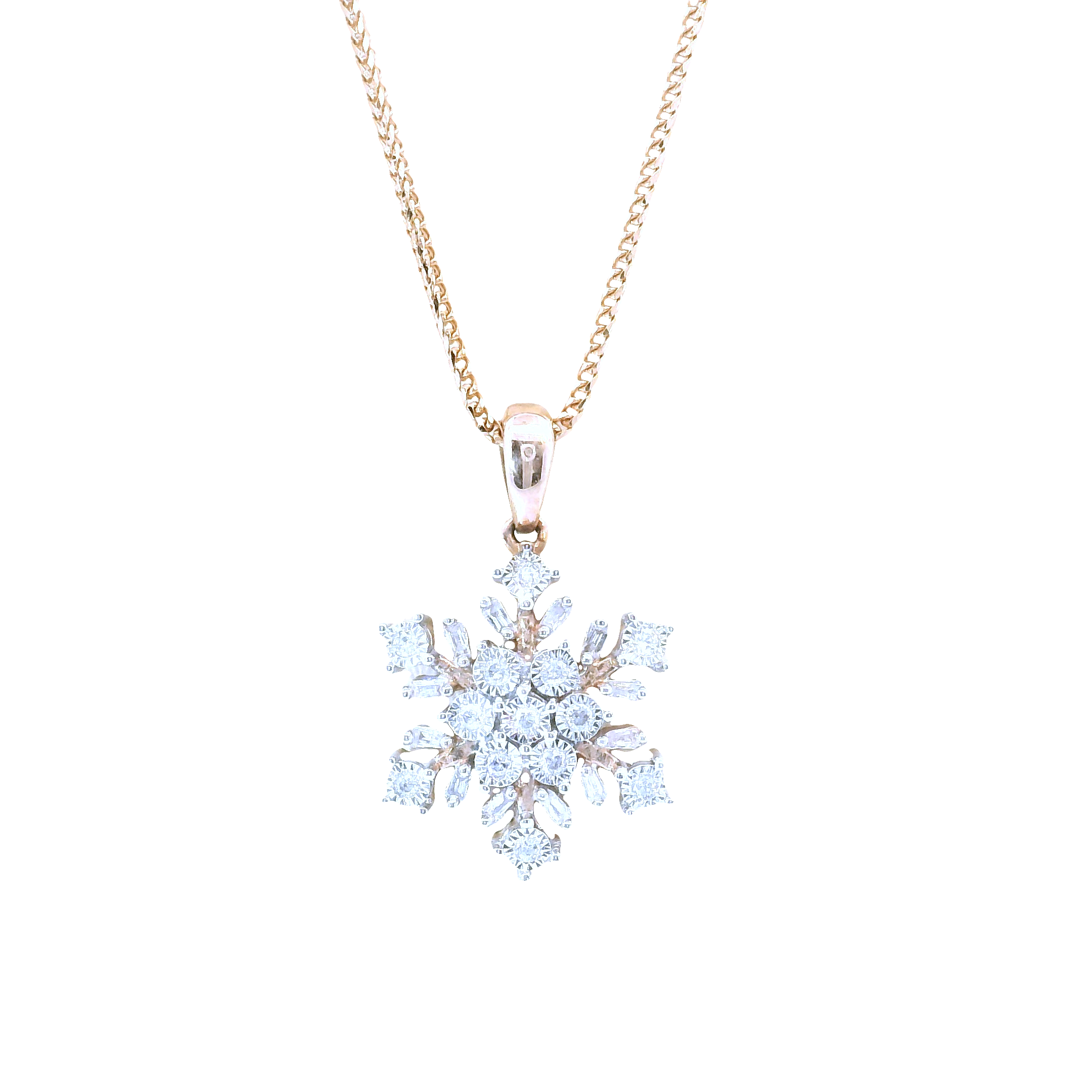 10K Rose Gold Diamond Snowflake Pendant 18 Inch Necklace Set 0.15 CTTW