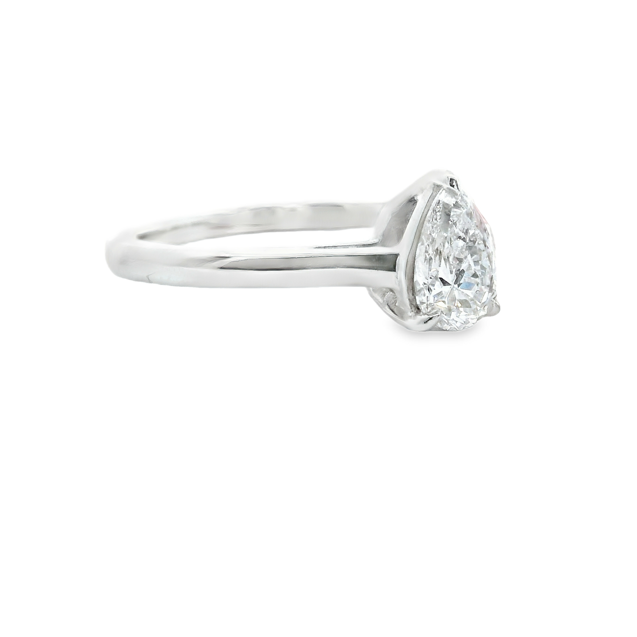 14K White Gold Solitaire Ring with Pear-Shaped Brilliant Lab Diamond .75 CT