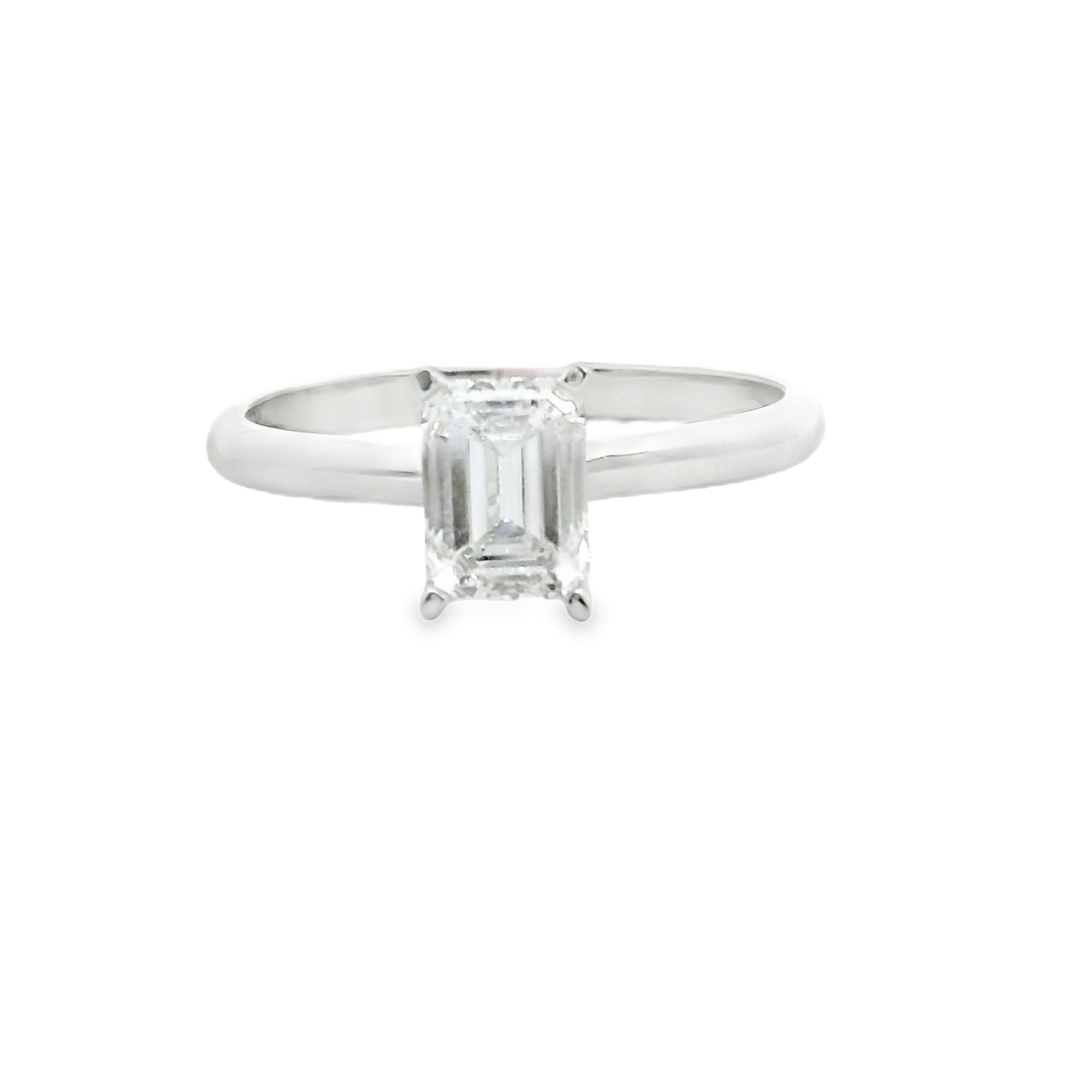14K White Gold Solitaire Ring with Emerald Cut Lab Diamond 1.00 CT