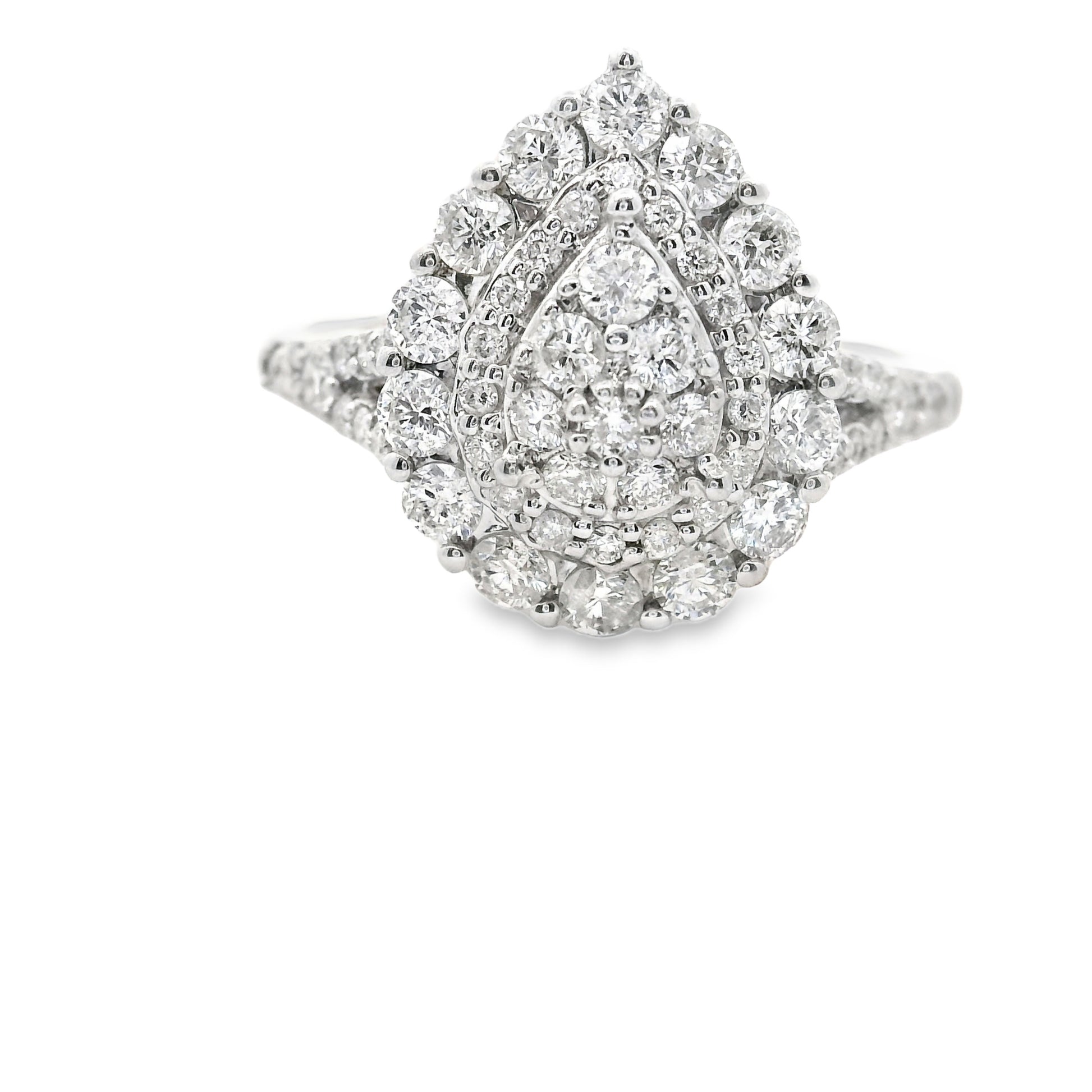 14K White Gold Multistone Pear Halo with Round Cut Diamond Ring 0.96 CTTW