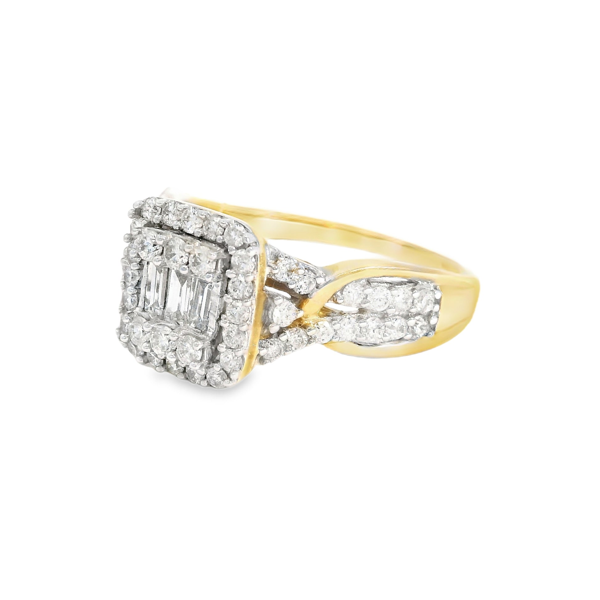 14K Yellow Gold Multistone Fancy Square Cut Diamond Ring 0.78 CTTW